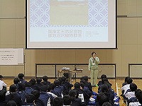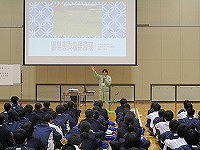 本日(12月5日・木)、1年生は、社会教育・文化財課から石毛彩子さんを講師として来校していただき、環境教育学習講演会を実施しました。