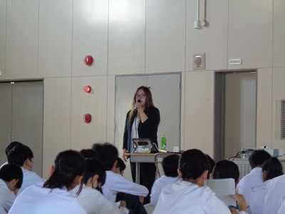 そして、2年生キャリア教育の第2弾『企業講演会 ~社会を動かすプロフェッショナル~』を今週の10月6日(月)からスタートをしました。11月20日(木)までの1ヶ月間で5つの企業様にご協力をいただき、5回継続した講演会を実施していきます。その第1弾。『株式会社フジ技研 取締役常務である「鏡谷 有紀 様』に講演会をお願いしました。