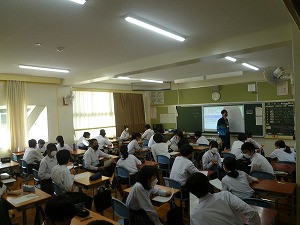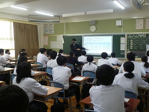 本日、2年生がメディアリテラシーの学習を行いました。この学習は、テレビやインターネットなどにより、さまざまな情報が飛び交う今、メディアの特徴(とくちょう)を知り、自分が知りえた情報について適切に判断し評価することや、情報を正しく発信し人や社会と関わっていくことなどについて学ぶというものです。