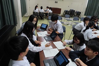 その中でも、3年生の「道徳授業における法教育」はある意味特別で、子どもたちの印象に強く残る授業になったと思います。それは、講演会や講義形式の授業ではなく、子どもたちが刑事事件をもととした模擬裁判を役割を決めて、子どもたちと担任の先生で作り上げる授業だからこそだと思います。法廷をイメージして設置された教室で、検察官及び検察庁事務官がコーディネーターとして授業をアシストし、それ以外は徹底して子どもたちが体験し、議論して授業が進行されていく。だからこそ、子どもたちは目を輝かせて、みんなが意見を出し合い、意見を戦わせての授業に夢中になっていくのです。3年生の強み!3年生のすべてのクラスにおいて、班の中で一人一人が自分の意見や考えを出し合うことができること。そして、その意見を一人一人がしっかりと話を聴くことが出来ること。その強みは、最終日の3年1組の中にもしっかりと活かされていました。何より3年1組のあたたかい雰囲気の中、議論し合うことが楽しそう!1人1人にしっかりと居場所があるクラスだと感じました。