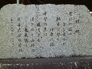 来週から仲間(なかま)入りする新入生の皆さん、写真は大池中学校の校歌(写真は1番のみです。3番まであります。)です。一緒に歌っていきましょう。