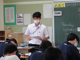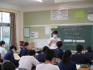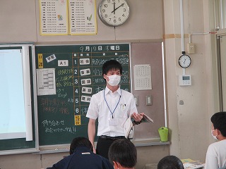 実習生の特別練習授業を3限目に3年3組で伊藤巧先生、4限目は1年1組で山本絋大先生が行いました。本日の授業も