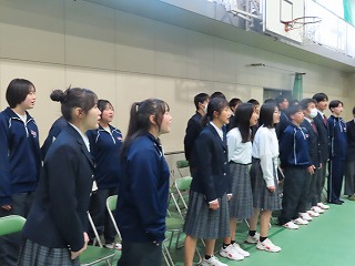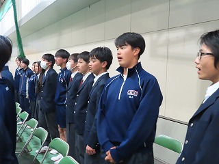 そのバックグランドミュージックとして、大池中学校伝統のある有志合唱団一人一人が、合唱に心を込めて歌います。有志合唱団の合唱曲は、『大切なもの』です。22名の歌声をエールとして、3年生の卒業生が新たな道へ旅立っていきます。