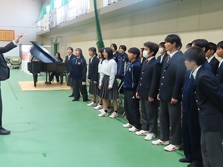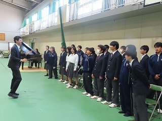 2年生20名と1年生2名の有志合唱団。今日の午後からも体育館で多くの先生方に応援されながら笑顔で、楽しそうに音楽授業担当の熱い指導の中で、一生懸命に取り組んでくれました!みんなありがとう!明日の卒業式、体育館一杯に心のこもった歌声を響かせてくださいね!