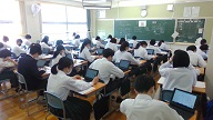 タブレットを使い、テスト問題をダウンロードして解き、送信する形式で取り組みました。国語、数学、理科のテストで、中学校1年生で学習した内容のテストです。さてどれくらい解答できたでしょう。後日結果が届きます。