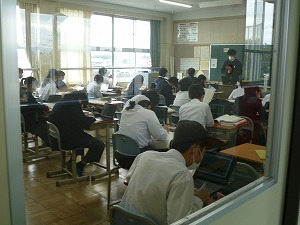 教室の授業では暖房(だんぼう)の力は大きいですね。しっかりノートに書き込んでいました。