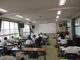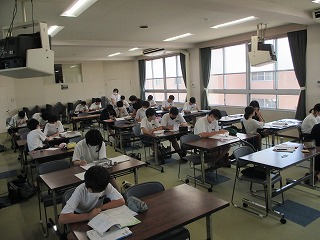 今日は子ども教室二日目です。朝9時から3年生の生徒たちが集まって勉強会を行いました。友達同士で教えあう姿も見られました。