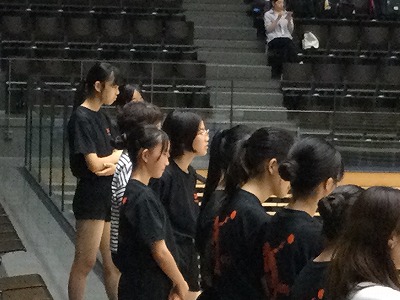 1セット目を粘り強く戦いましたが相手チームに先取されての2セット目。顧問の先生の指示を受け、そして「まだまだいける」という気持ちを高めてもらい、2セット目を気持ちを切り替えて頑張りました。新人大会1日目で他競技の試合時間と重なっているため応援は2セット目のスタートまでしかできませんでしたが、全員があきらめずに最後まで粘り強く戦ってくれたことを聞かせてもらいました。