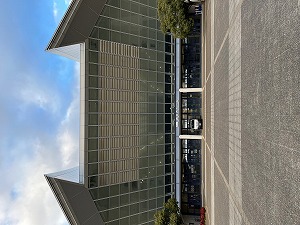 大会中の写真をホームページにのせることはできませんので、別日に撮影(さつえい)した四日市ドームの写真をのせます。(なので、今日はどんより曇(くも)り空でしたが、写真の空は晴れています…。)