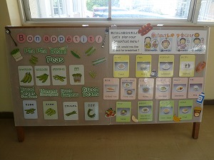 生徒昇降口内に写真の掲示物(けいじぶつ)があります。朝食の大切さなどが書かれています。