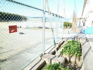 8組菜園(さいえん)では、前に植(う)えた野菜(やさい)が育ってきています。野菜たちも、この太陽の光はありがたいと感じていることでしょう。