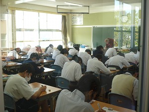 1限目、2年生学級の様子です。課題プリントに取り組んでいました。眠(ねむ)くて考えがまとまらない…ということのないように生活習慣をつくっていきましょう。