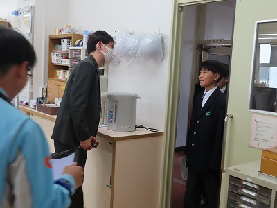 「失礼します!1年1組の○○です!1年1組の鍵を借りに来ました!」「ありがとうございました!失礼します!」。1年生のクラス毎での代表の生徒が上手に職寝室の入室の仕方、鍵の借り方、退出の仕方・・・みんなとっても上手に対応してくれました!