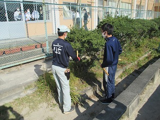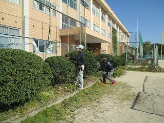 本日、10月29日(木)の午後から、四日市農芸高等学校環境造園科の生徒さんたちによる「出前実習(剪定)」が行われ、とてもきれいにしていただきました。
