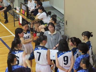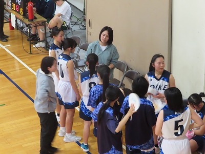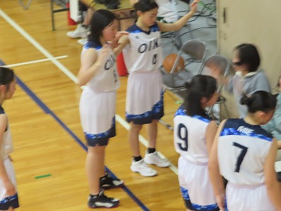 特に後半の第3Q・第4Qの攻め続ける意識が、ディフェンス面でも前で前で守るという気持ちにつながって、相手に強いプレッシャーをかけてボールを奪って速攻という試合展開につなっがってきました。後半だけなら26-34というように、すごく善戦をした試合となりました。チームの中で、小学校時代のバスケットボール経験者が1名しかいないチームの中で、経験者のキャプテンがしっかりとチーム引っ張り、経験のないチームのメンバーがここまで頑張れるようになってきたのは普段の練習の積み重ねだと思います。