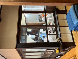 衛生面(えいせいめん)に気をつけながら、餅(もち)を餡(あん)でくるむ作業をされているところです。(年末ですがとても忙(いそが)しい感じでした。)根気と集中力のいる仕事だと感じました。