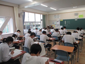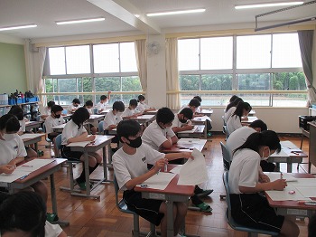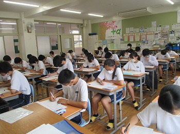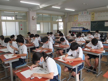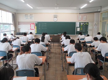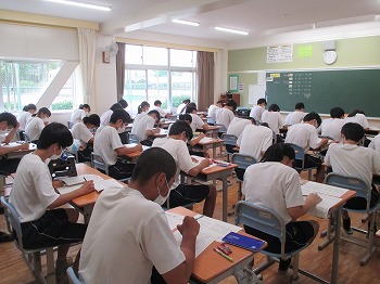7月13日(月)本日と明日14日(火)は大池中学校の1学期期末テストです。1年生にとっては、中学校での初めての定期テストです。2・3年生も本年度はコロナウイルス感染症に係る学校の臨時休校の影響で、中間テストが実施できなかったため、初めての定期テストでした。思うように解けたでしょうか。明日もテストがありますので、今日は最終確認を行い、明日にテストに臨んでください。