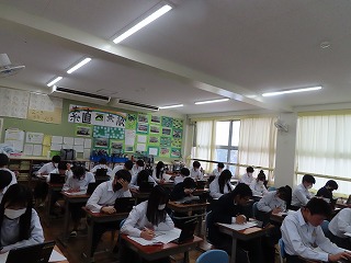 三重県内統一の『みえスタディ・チェック』は小学校5年生の学年と中学校2年生の学年で、国語・数学を中心に、英語・理科(全国学調に合せて実施)も含めて毎年実施しています。これは、令和8年度の1学期に小学校6年生の学年と中学校3年生の学年で実施される「全国学力学習状況調査」に向けて、これまで中学校2年生までで身についたチカラを確認するための三重県内統一テストです。この「みえスタディ・チェック」は、中学校での子どもたちの評価や成績に直接関係するものではありません。しかし、このテストをきっかけにして、これまでの中学校授業で学んできたことの「復習や確認をしていく習慣をつけてほしいというねらい」があります。【写真は2年生すべてのクラスでの「みえスタ」受験の様子から】中学校授業で学んできた積み重ねを「復習したり確認すること」は、家庭学習が絶対的に有効で効果があり、自分の学力を高めていく近道だとも思います。「家庭学習」は、各教科からの宿題や課題に取り組むことももちろん大切ですが、今日学校の授業で学んだことを自主学習として家庭で取り組むことはもっと大切なことだと考えます。だからこそ、昨日実施した「みえスタディ・チェック」をきっかけにして、家庭学習にいっぱい取り組んでほしいと思います。