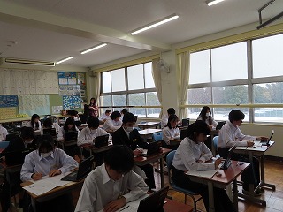 大池中学校2年生のすべてのクラスにおいて実施した「みえスタディ・チェック」。国語、数学ともタブレットを活用しながらみんな粘り強く最後までテストに一生懸命に取り組んでいました。2年生のみんな、本当によく頑張ったね!