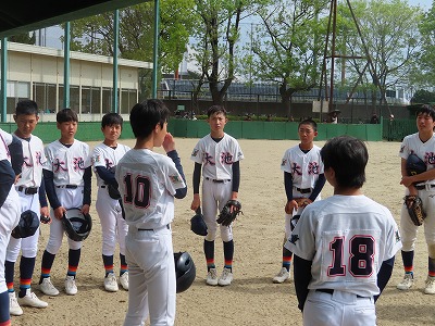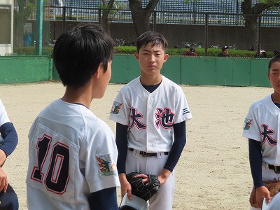出場する選手1人1人が、試合の中で自分がすべき役割をしっかりと理解して、出場をする選手みんなが活躍できるチームが大池中学校です。さあ、明日4月18日(日)は2回戦です。「全員野球」で勝ち上がって、来週の準々決勝に進出しよう!ファイト!大池中学校軟式野球部!ファイト!