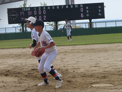 大池中学校の1回戦は、霞ケ浦第2野球場で内部中学校との対戦。大池中学校は今大会の「シード校」となる大会優勝候補の筆頭にもあげられる実力のあるチームです。その実力を1回の裏から発揮!1回で4点を先取!大池中学校ペースでの試合が進みます。昨夏の県大会ベスト8での中心選手が残る大池中学校野球部は、多くの選手が経験を積んでいることもあり、攻撃でも守備でも非常にレベルの高いチームとしての試合展開でした。足も絡めた攻撃で5回までに7点を取っての「5回コールドゲーム」として1回戦勝ちあがりました!