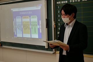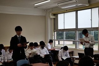 今年度の大池中学校では、3年生「道徳授業」の一環として、5学級すべてのクラスを1時間ずつ、津地方検察庁から講師先生をお招きしての「法教育の出前授業」に取り組んでいます。3年4組をスタートに先週、3年2組と3年3組でも「法教育」を実施しました。子どもたちに「法的なものの考え方」や、道徳授業として、主として「集団や社会とのかかわりに関すること」の内容としての「遵法精神、公聴心」「公正、公平」についての考え方を学ぶことをねらいとしています。『話し合いで物事を解決してほしい』『両方の立場の話を聴いてほしい』と弁護士のみなさんは子どもたちに伝えてくれました。中でも、『正解はなく多様な意見がありうること、人の話を聴き、自分の意見を述べて1つの結論を出すことが大切』であるという言葉が印象的でした。【3年2組での「法教育(模擬裁判授業を通して)」の様子から】