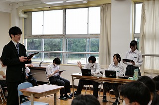 津地方検察庁では、『ふれあい広報』を実施し、法教育授業を支援してくれています。中でも刑事司法の分野における検察庁や検察官の役割、司法や裁判の役割に関して、「ふれあい広報」による広報活動を各学校への出前授業として法教育の支援をしていただいています。大池中学校で実施していただいているような法教育授業だけではなく、「移動教室」として、子どもたちが直接、「検察庁」に訪問し、検察庁の業務説明や司法制度等の説明、施設見学や裁判所の法廷見学等まで実施していただくこともできるとお聞きしました。道徳授業の法教育では、『中立的なものの考え方や話し合いの大切さを学ぶこと』を大切にしています。そこで今回の授業のように、「刑事事件の模擬裁判」体験を行いました。視聴覚教室を「法廷」として見立て、子どもたちや担任の先生方を役割分担をし、裁判長の立場で、裁判官の立場で、検察官の立場で、弁護人の立場で、そして被告人の立場になって模擬裁判を楽しく学びました。学習班になって、「有罪」か「「無罪」の結論と、主な理由を発表しながら、みんなが思考をフルに活用し意見交流しながら考えをまとめていきました。無罪・有罪に対して意見を交流する中で、相手の発言にしっかりと耳を傾けながらあたたかい雰囲気の中、授業がすすみました。【3年3組での「法教育(模擬裁判授業を通して)」の様子から】