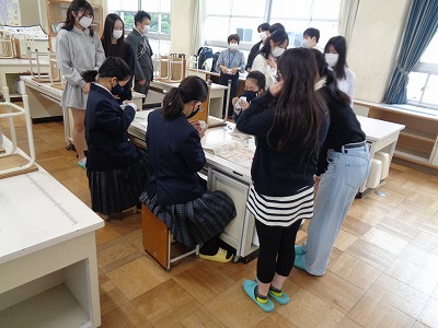 本日が初めての授業間交流なので、中学生の子どもたちは緊張感と嬉しさと恥ずかしさなどの思いもある中でのスタートでしたが、高校生のみなさんが、家庭科授業においてアドバイスをしてくれたり、作業をあたたかく応援してくれたり、自主学習のサポートをやさしく対応してくれました。高校生のみなさんのあたたかさと優しさに、中学生の子どもたちは、時間とともにコミュニケーションを取り始めていきました。そして、高校生のみなさんのあたたかさで寄り添ってもらいことで、どんどん笑顔が増え始め、いつの間にか小グループのゲームでは、ガッツポーズで嬉しさを表現してくれたり、嬉しことや楽しいことを言葉で表現できるようになってきました。