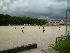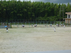 新型コロナウイルス感染症の影響もあり、少しの間、部活動を実施しない期間がありましたが…。その影響でしょうか。運動場に、うっすらと緑(草)が。植物の生長のスピードにおどろきます。
