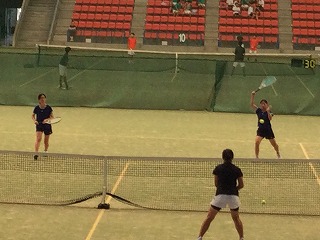 1回戦の相手は、三重大学附属中学校戦です。県大会に出場するだけあってチカラのあるダブルスペアです。しかし、チカラのあるチームにも、坂田・加藤ペアはそれを上回るスキルと試合運びでストレートで勝ち上がって、7月25日(金)の準々決勝に進出が決定しました。ぜひ、頂点の優勝をを目指して頑張てほしいと思います!ファイト!