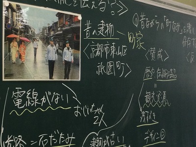 2年4組の子どもたちは、地理分野の学習を通して、班の仲間やクラスの中から出る意見や考えから、京都市が抱える現状を把握して、その課題をともに考え、解決するために方策を考え合う授業に、みんなが大変興味を持って、とっても素敵な表情で授業に取り組んでいる様子が伝わってきました。