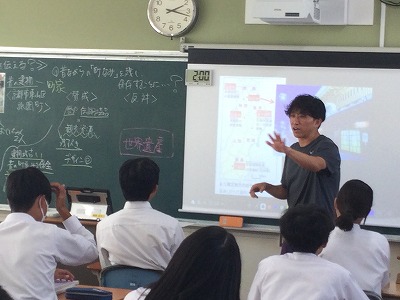 2年生社会では、地理分野の最終。本時の単元は「近畿地方 ~歴史の中で形作られてきたきた人々の暮らし~」。授業の様子は昨日10月6日(月)2年4組の社会授業の様子です。授業の様子を参観に行った時には、班ごとで話を深めていた最終場面であったため、本当に残念ながら班で仲間とともに学び合う様子を紹介する写真は一部しか撮れませんでした。しかし、授業のテーマである、「京都の景観(伝統)を守る取り組みに賛成?反対?」の意見交流が活発に行われていたことを授業担当者から聴かせてもらいました。