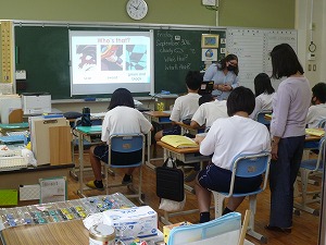8組では英語の学習に取り組んでいました。英語指導員(YEF)さんの質問にも積極的にこたえていました。