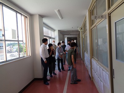 本日は、コミュニティスクール運営協議会委員の皆様にお越しいただき、学校の様子をご覧いただきました。委員の皆様から「生徒の皆さんが暑い日なのに学習に集中して頑張っていますね!」「挨拶がしっかりできますね!」「廊下や階段、教室やトイレがきれいに掃除されていますね!」などのお褒めのお言葉を頂戴しました。