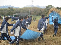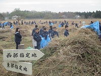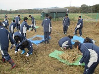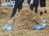 前日に除草された「御池沼沢の草集め」作業に、1年生が取り組みました。