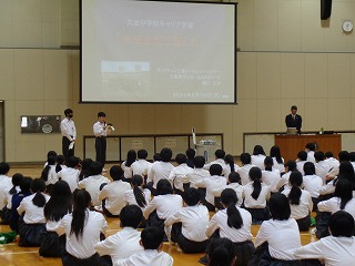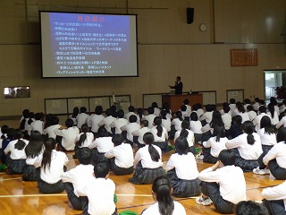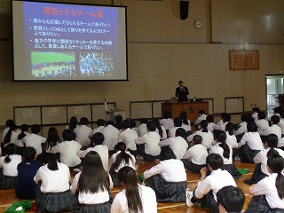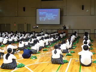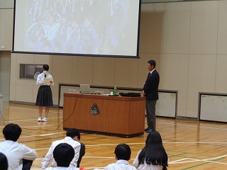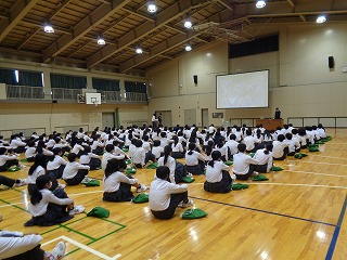 みんな真剣に聞いています。代表からのお礼の言葉です。