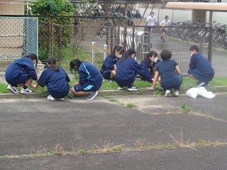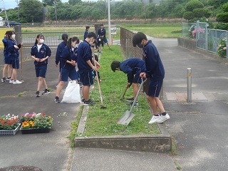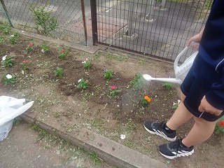 環境福祉委員のみなさんは、花壇の除草作業をして、花を植えました。