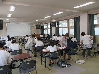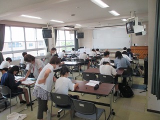 本日は、地域の指導者の皆様が大池中3年生生徒の皆さんの『勉強』に関する質問に答えてくれたり、わからないことを教えてくれる「地域子ども教室」が開催されました。たくさんの生徒が朝から中学校に集まり、集中して勉強していました。