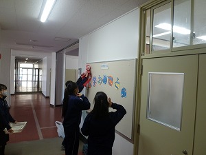 美術部員の皆さんが新年度スタート(入学式)に向けた飾(かざ)りつけの準備をしてくれていました。年度末に向けて片付けが中心だった校舎内ですが、華(はな)やかさが少し戻(もど)ってきました。