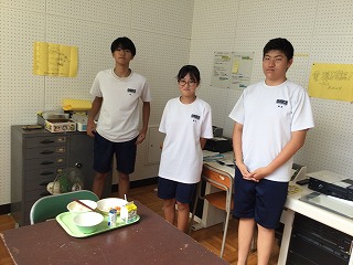 それは、部活動はもちろんこと、生徒会本部役員の皆さんだけではなく、各委員会活動もにも同じことが言えます。写真は、本日9月30日の「報道委員会のお昼の放送の様子」です。以前にも報道委員会の取り組みを紹介しましたが、本日は、毎週火曜日を担当する3名のみなさんにスポットをあてて頑張っている様子を紹介します。