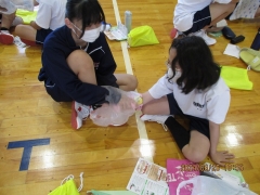 けがの応急処置、心肺蘇生法の実習を行いました。