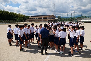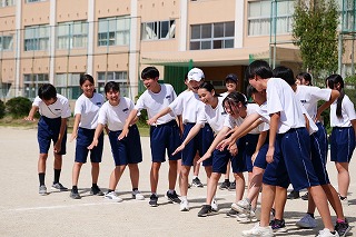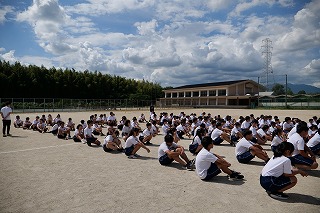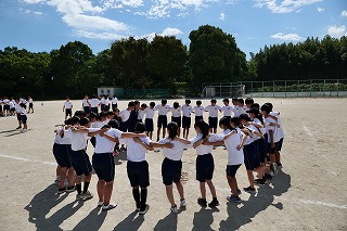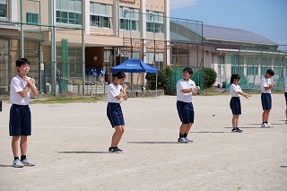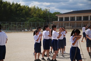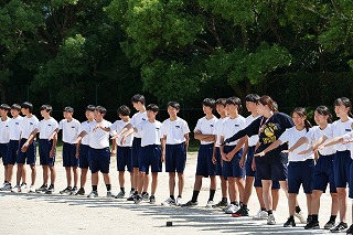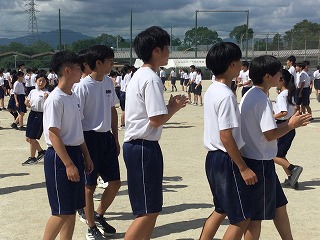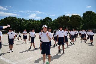 1週間前の3年生学年練習時よりも、さらにクラス、学年全体で一体化のある動きとなってきたのがよくわかります。3年生の子どもたちは、中学校生活で最後となる「体育祭」に向けて、事前の練習や体育授業の取り組みに、元気に、明るく、笑顔で、一生懸命に、仲間とともに、先生とともにとってもステキな雰囲気の中、頑張って取り組んでいます。