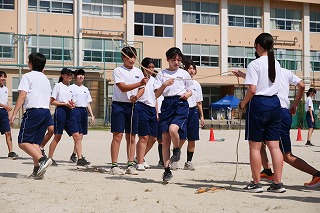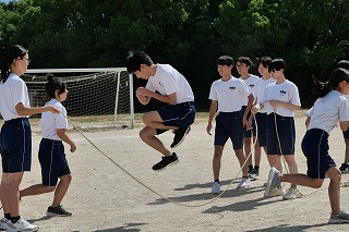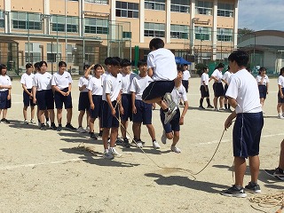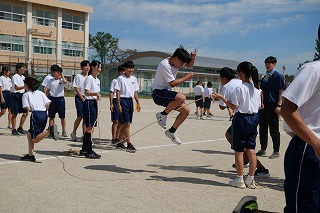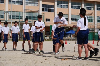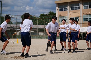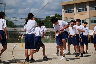 学年種目の「まわせ思い出の縄」では、短時間の中でも縄の回してが中心となって声をかけないながら、そして跳んだ回数をみんなでカウントしながら頑張っていました。休憩時間にはクラスで円陣を組んでチーム意識を高めたり、作戦を話し合ったりする様子も見受けられました!