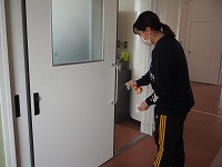 校内の中で特に生徒が手を触れる箇所(ドアノブ、手すり、スイッチなど)は、生徒が下校した後、毎日職員が消毒しています。