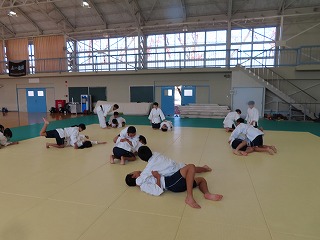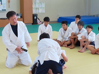 そんな中、1年生の保健体育授業では『武道』に入りました。大池中学校では武道の中でも「柔道」を選択して取り組んでいます。中学校では平成24年度から、第1学年と第2学年の保健体育授業において武道が必修になり完全実施となりました。中学校で取り組む武道には、「柔道」、「剣道」、「相撲」を中心に、学校や地域の実情において選択し実施されています。大池中学校では、平成24年から「剣道」と「柔道」を選択し、年度によって競技を選択していましたが、近年は「柔道」を中心に実施しています。