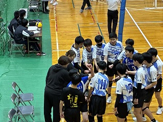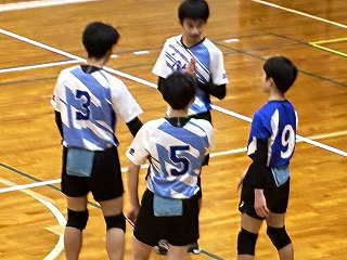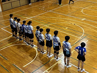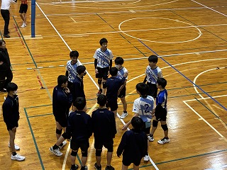 大雪が心配された週末1月24日(土)~25日(日)の両日、津市立久居中学校体育館を中心として「第54回三重県中学生バレーボール新人大会」が開催されました。24日(土)のは大池中学校男子バレーボール部が2回戦から出場をしました。チーム監督が体調を崩し、急遽チーム監督を女子部顧問に依頼し、男子バレーボール部の三重県大会の指揮をとってもらいました!お休みしている顧問にも良いニュースを伝えようと、男子バレーボール部チーム一丸となって頑張りました。