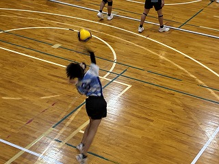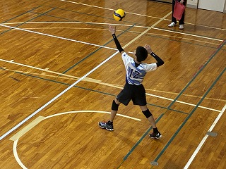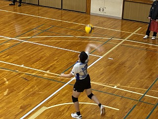 幸いに大雪の心配もまったくなく、安全に久居中学校体育館で新人大会が開催されました。大池中学校の2回戦の対戦相手は、伊勢市立小俣中学校です。なかなか粘り強いチームで1セット目の出だしは苦戦しました。スタート時は最大8点差が開くほど、なかなかリズムに乗れない状態が続きましたが、サービスがしっかりと決まりはじまると、徐々に流れがきはじめて、左右のエースがしっかりと力強い攻撃をはじめ、ブロックも決まり始めて8点差を見事逆転。セッターのトスワークも良くなってチームに活気が出てきました。第1セットを25-16で大逆転で奪い、その勢いのまま第2セットへ・・・。