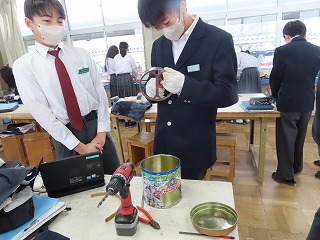 1月の最後の日、本日1月30日(金)の1限目の技術室。3年3組では技術授業に取り組んでいました。授業テーマは、「学校生活や自分の生活がより良いものになるような作品を作ろう!」です。