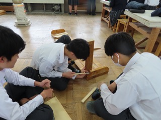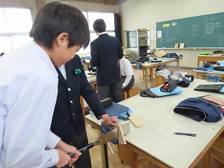 1年生の木材加工で「のこぎり」を活用した授業から3年が経過しました。現在、3年生で取り組んでいるものは、技術授業における3年間のまとめでもあります。3年間の技術授業で積み重ねてきた様々な技術を活用して『学校生活や自分の生活より良いものにするため』の制作にとりかかっています。