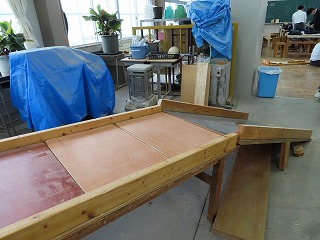 3組の子どもたちが作る作品には、教室内のロッカーに入る大きさで考えた「仕切り」や「本棚」、木製長椅子(ベンチ)、自転車置き場の「クラス表示札」など、さまざまな意見やアイデアを出し合って、楽しそうに授業に取り組んでいます。3年間のまとめとしても、「のこぎり」をうまく活用したり、電動ドリルを活用したり、タブレットを活用したり・・・このような動きからも、技術授業における3年間の積み重ねがわかります。3年3組のみなさんが制作した作品や、他の3年生のみなさんが制作したものの完成が楽しみです!